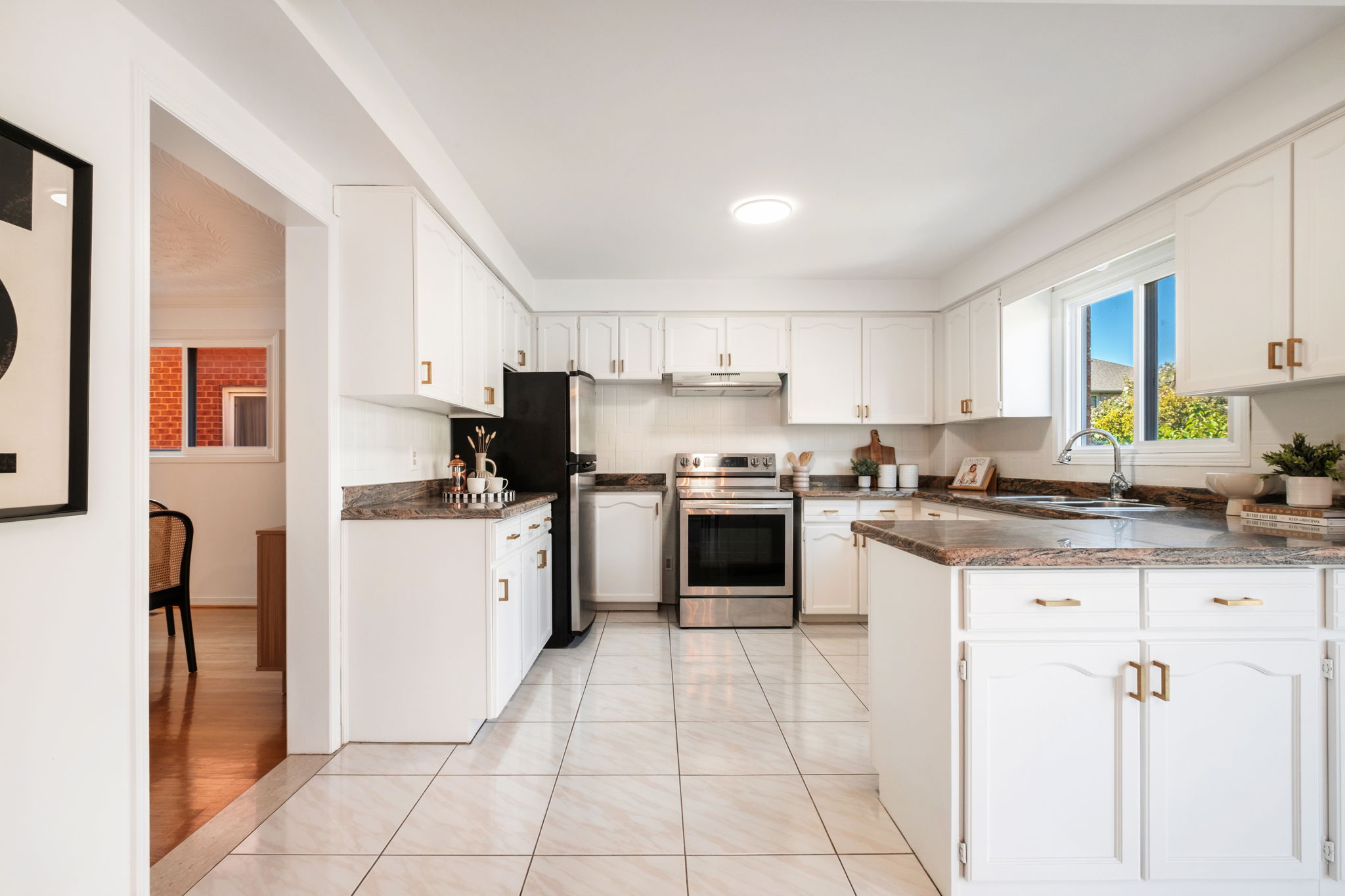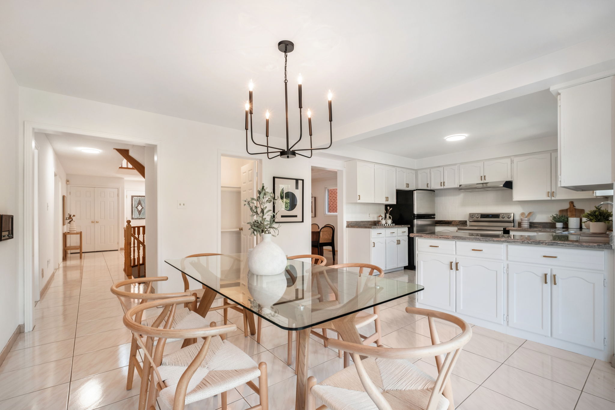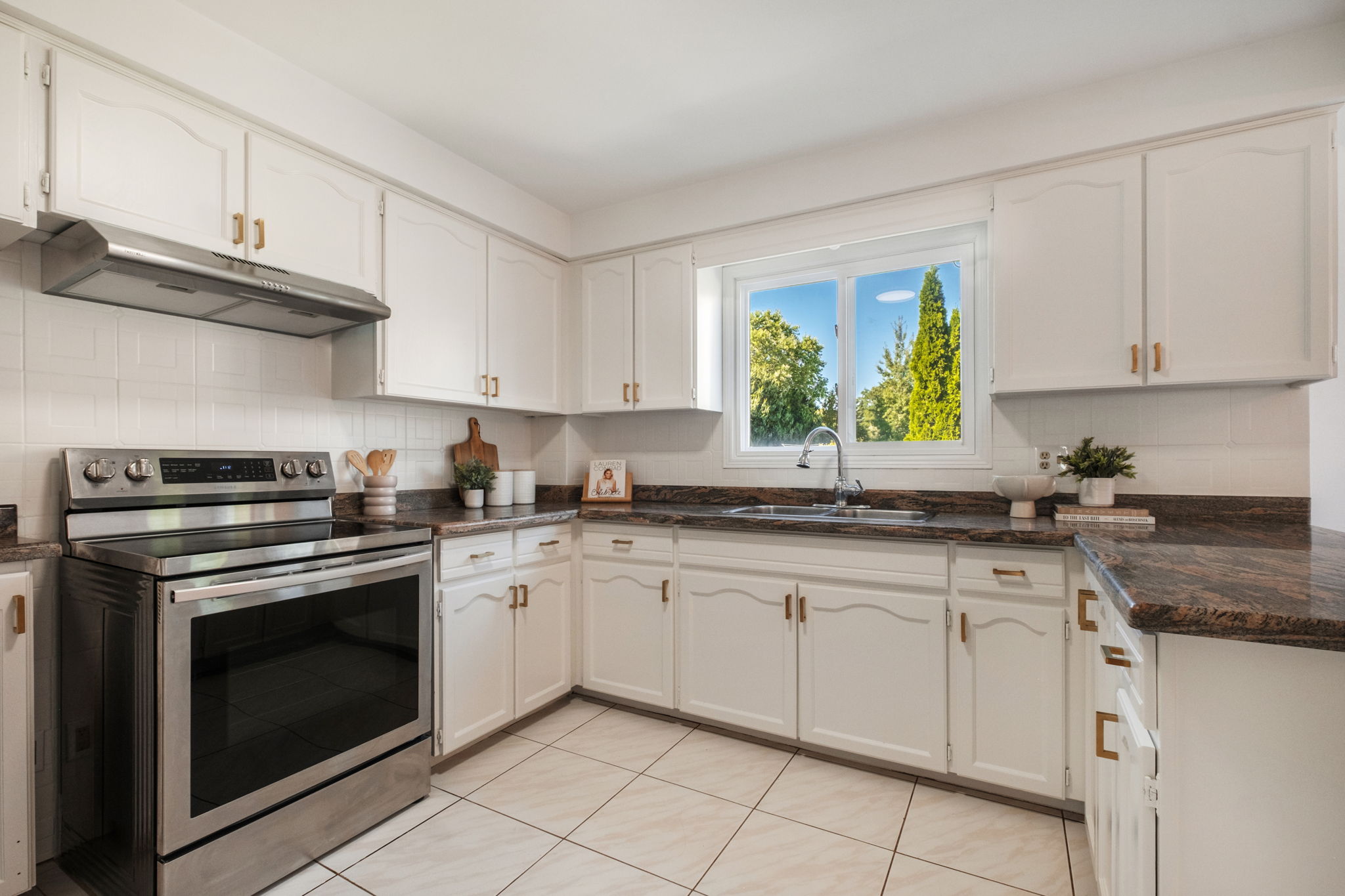 Extras: Stainless steel refrigerator, stove, hood range, washer and dryer, central vaccum. All existing light fixtures and window coverings.